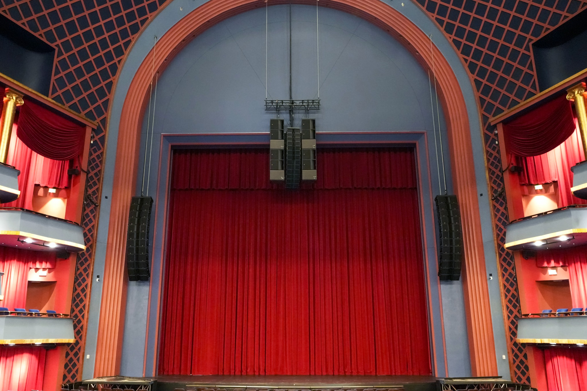 Major work was performed in Sarofim Hall, which received a state-of-art sound system. The shared back of house spaces - for both Sarofim and its smaller, sister, space Zilkha Hall – have also been newly re-wired and re-amplified for the house 70V speaker system. The upgrade included a mix of single and multi-mode fiber infrastructure allowing touring performances and in-house production company Theater Under the Stars (TUTS) to distribute various AV signals. The results enable crystal clear audio feeds from both venues straight into the relevant dressing rooms and backstage workspaces, ensuring uninterrupted live sound. The venue has new AV data infrastructure, PTZ, router, ethernet switches, cabling and panels. In addition to fiber and copper data, 52 x SDI ties were added to panels throughout the theater.
