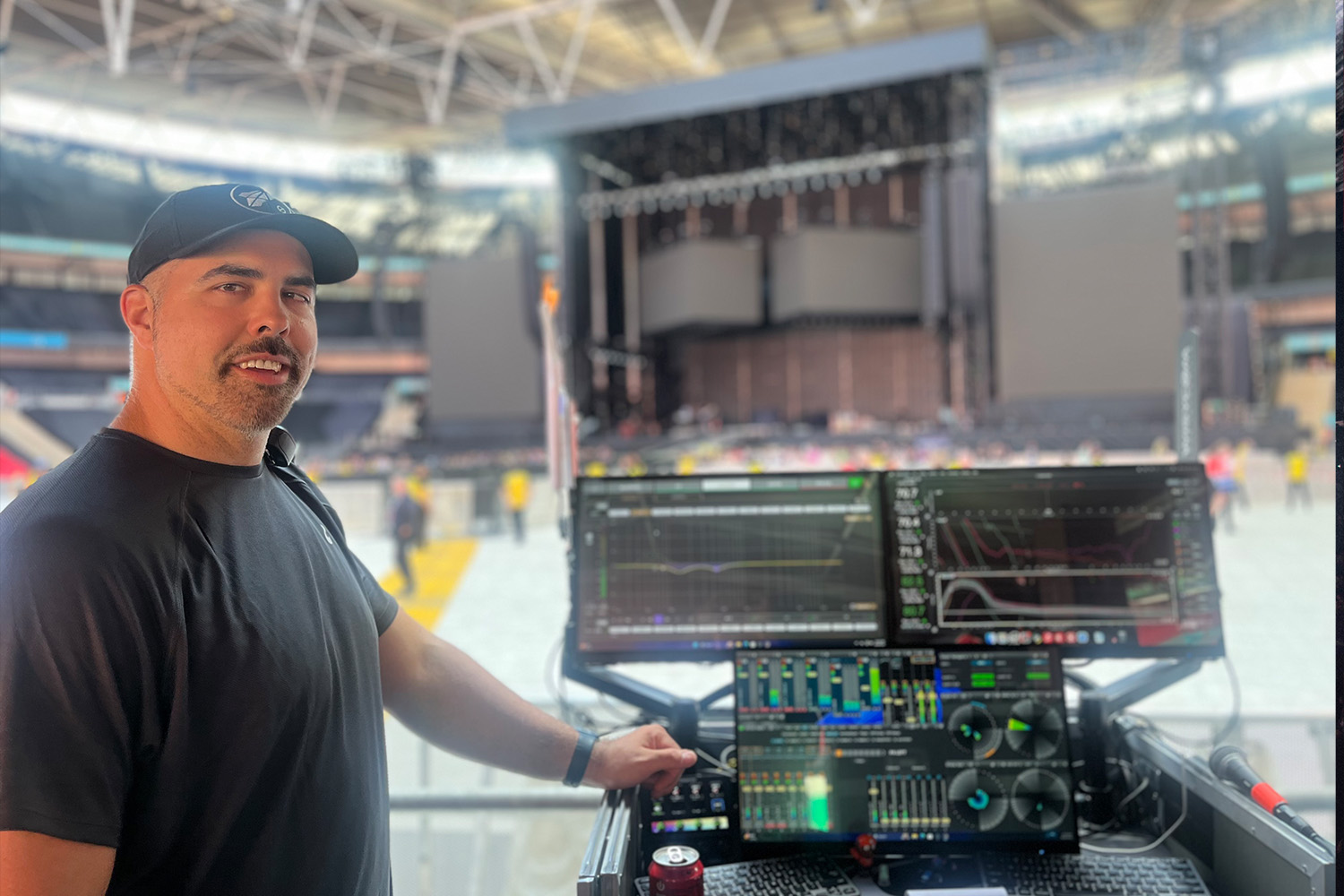 Audio Systems Engineer Bill Chase is handling a substantial Adamson PA system - over 300 VGt's (including delays), VGs, and CS10 speakers are driven via Milan on a separate network also managed by Ricki & driven via Adamson’s network Gateways & yet another Prodigy.MP loaded with AVB & Dante interfaces. Flown end fire subs and large cardioid ground sub arrays help achieve the desired impact. Bill notes: ”The low-mid punch is very impressive. We want the same impact everywhere in the venue, while not losing the little details within the music, and bringing out the full experience the fans expect of the band. That's something that this Adamson rig does really well.”